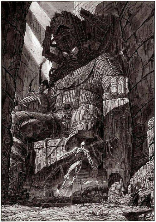 Galactus and his heralds – Silver Surfer, Firelord, Terrax, Nova & Air-Walker commission by John Byrne. 2008.